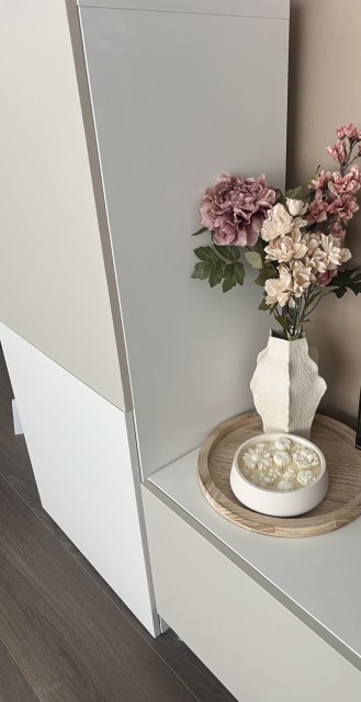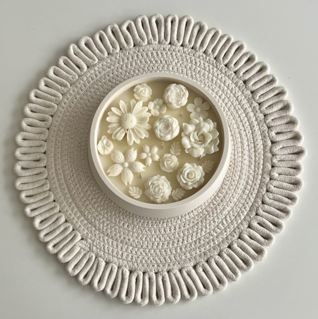 Beholderen er støpt for hånd, så du kan finne små bobler eller ujevnheter som gjør produktet unikt, så det er ikke en feil. Jesmonitt er et ikke-brennbart materiale og er derfor egnet for produksjon av lysestaker eller lysbeholdere.