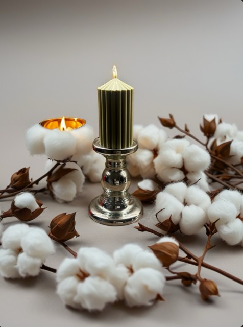 Kubbelys med riller laget i ren soyavoks med ubleket bomullsveke.