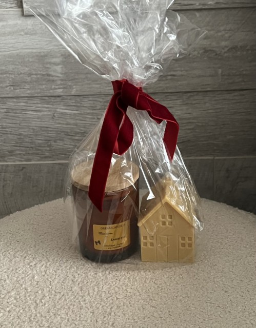 Inneholder Duftlys Mandarin og sandeltre og dekorlys hus.